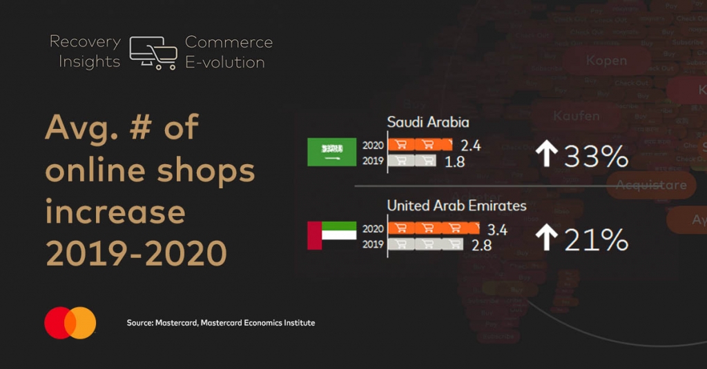 In Saudi Arabia, increase in online consumer spending was primarily driven by a 33% YoY jump in the number of online shops from 2019 to 2020.
