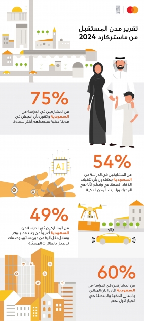 Mastercard Cities of the Future Report revealed that respondents in Saudi Arabia overwhelmingly agree that living in a smart city would make them happier (75%).