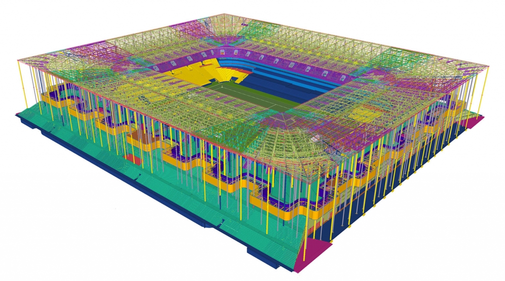 The Stade Velodrome’s massive 250-meter cover, which weighs 6,000 tons and rises 65 meters from a huge framework of galvanized steel, was manufactured by Horta Coslada using Tekla software. The stadium was modernized in 2014, and has a capacity of 67,395 seats.