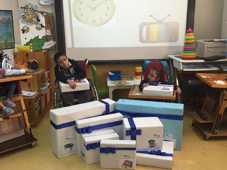 there was a friendly interaction between the disabled children and the visitors who distributed gifts to create an atmosphere of pleasure and happiness.