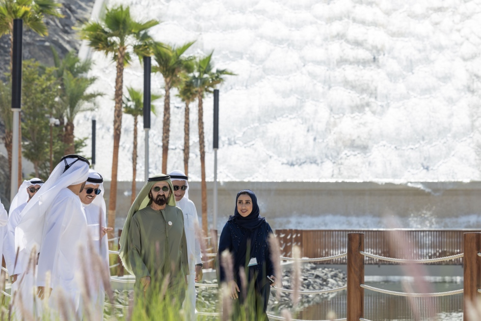 His Highness Sheikh Mohammed unveiled the Hatta Sustainable Waterfalls project, implemented by DEWA as part of the Hatta Master Development Plan. The project features a stunning waterfall descending from the Hatta Dam, and the world’s largest mosaic panel on the waterfall’s slope, recognised by Guinness World Records. Covering 2,200 square metres and crafted from 1.2 million pieces of natural marble, the mosaic pays tribute to the UAE’s founding fathers, the late Sheikh Zayed bin Sultan Al Nahyan and Sheikh Rashid bin Saeed Al Maktoum. The Hatta Sustainable Waterfalls project aims to boost tourism and investment in the region, with retail stores and F&B outlets offered free of charge to local Emirati citizens.