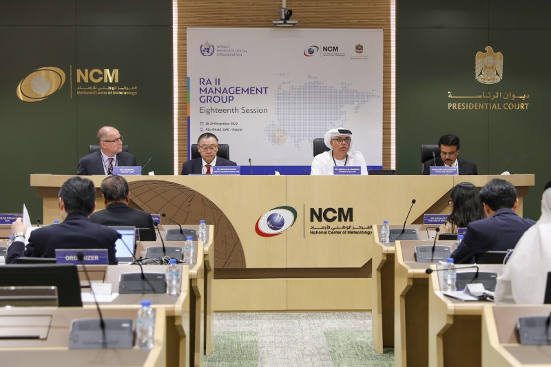 The 18th session of the World Meteorological Organization’s Management Group meeting of RA II (Asia) kicked off today at the headquarters of the National Center of Meteorology (NCM) in Abu Dhabi under the chairmanship of His Excellency Dr. Abdulla Al Mandous, Director of NCM and President of the Regional Association II (Asia) of the World Meteorological Organization (WMO).