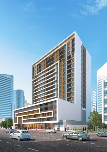 The development is spread over a land area of 38,917.02 square feet, and will offer 399,453 square feet of residential and commercial area, with a mix of 278 units: 132 studio, 122 one beds and 24 two bed apartments over 14 levels and a ground floor. The building also includes 22,988.48 square feet of commercial area for seven retail outlets, along with a gymnasium, recreational facilities, play area and four levels of covered parking for over 300 vehicles.