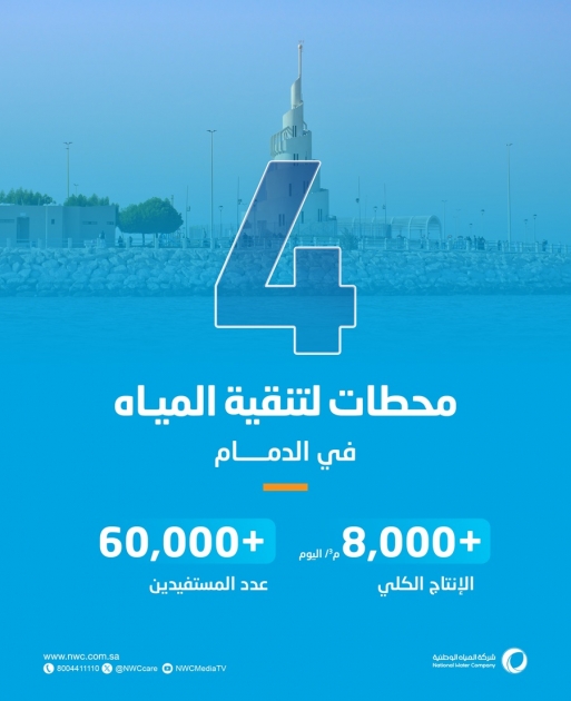 The National Water Company (NWC) has completed the operation of four new drinking water purification plants in the districts of Al-Shula in the city of Dammam in the Eastern Province. These plants represent the second package for the purification of drinking water in the cities and governorates of the Eastern Province. The aim of the project is to improve the quality of water for customers and expand the supply of desalinated water.