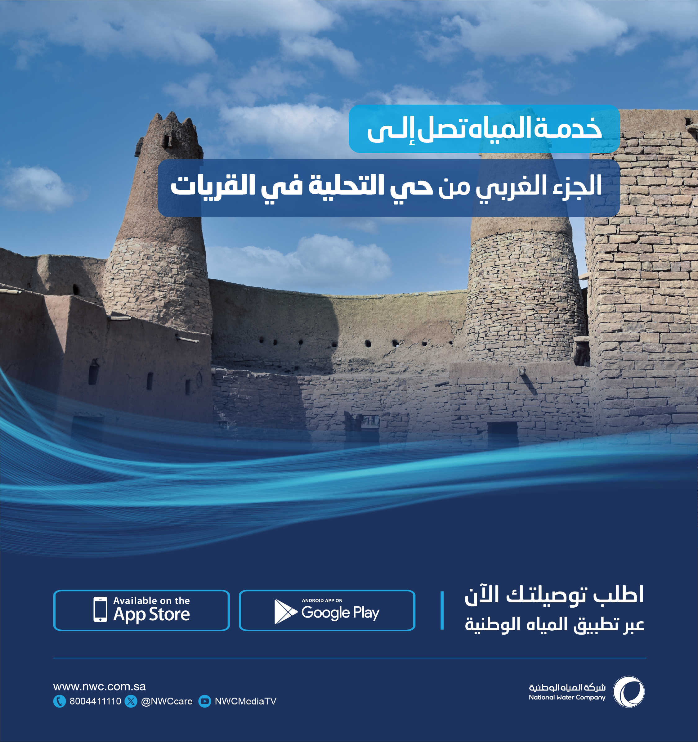 The company urged customers who wish to avail of the service to apply through the official channels, be it the mobile app or the e-branch e.nwc.com.sa. NWC pointed out that the aim of implementing this project is to raise the coverage rates of drinking water networks in the region, in order to achieve its strategies, and improve the quality of service provided to customers in all regions of the Kingdom.