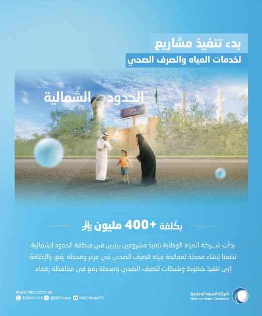 The National Water Company (NWC), represented by its Northern Cluster, has started the implementation of two sanitation projects in the Northern Borders region at a total cost of more than 400 million Saudi Riyals.