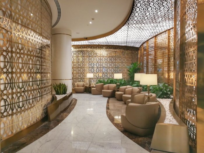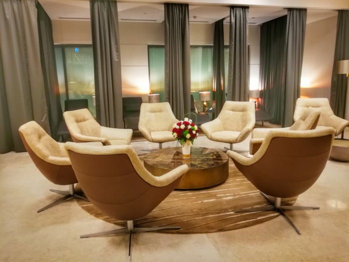 Spread over a two story, the lounge offersguests a wide array of food and beverage services including dining areas and bars, luggage room, entertainment area, a smoking room, prayer rooms, business centre, kid’s room, nap area, shower facilities, baby changing facilities and a wellness area.