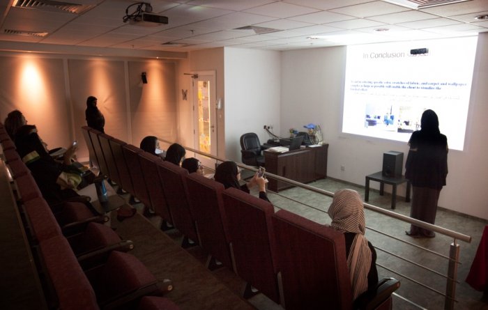 The goal of the seminar was to raise awareness about the importance of sensory in design and visual harmony in every home. During the seminar, Mrs. Renad discussed the basic elements of interior design focusing on space, form, line, texture, as well as the relationship of color with design and the effect it can have. The seminar also focused on concepts that many non-design professionals might not know about such as “sensory perception,” “ordering system,” “spatial illusion,” as well as “complimentary accessories.” Mrs. Renad was able to simplify these concepts which led to the audience’s interaction and admiration.