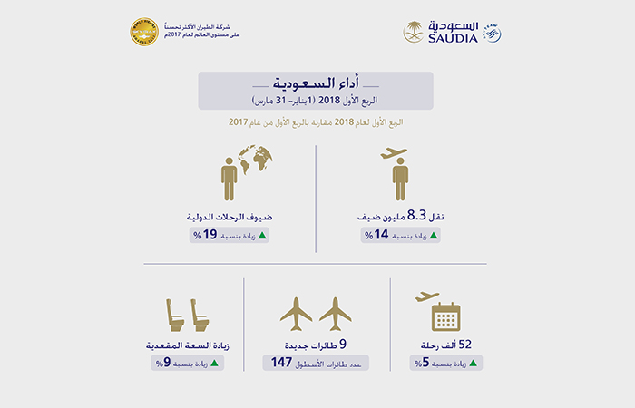 Saudi Arabian Airlines (SAUDIA), the national carrier of the Kingdom of Saudi Arabia, has reached new heights in its 73 year history, revealing milestone figures from Q1 2018 results.