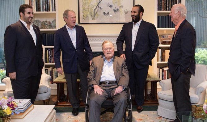 Saudi Crown Prince Mohammed bin Salman met former US presidents George HW Bush, and his son George W Bush.
