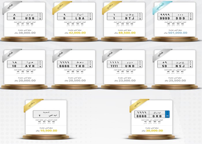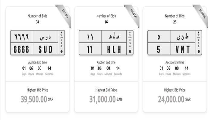 The traffic department said that auction winners will receive their plates through the Saudi Post service. The department added that every bidder must pay a registration fee of SR1,000 before offering a price for a license plate.