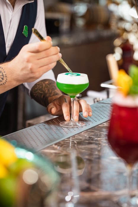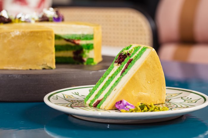 At the heart of the festivities lies a series of exclusive menu items, specifically developed to commemorate the occasion of the restaurant’s first ever Saudi National Day in the Kingdom. An ode to Saudi Arabia’s rich culinary heritage, the exclusive dishes include a decadent Pistachio Cake, homemade Dates Ice Cream made from local dates, Turkish Coffee with cardamom, and last but not least, the Nazar Sour – a bar signature – which had a fresh new look right in time for Saudi National Day in a vibrant green hue that references the spirit of the Saudi national flag.