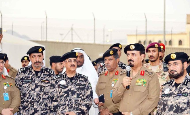 Lt. Gen. Saeed bin Abdullah Al-Qahtani, deputy interior minister for operations affairs and general supervisor of public security, visited the headquarters of the facilities security forces in Mina on Monday and reviewed a crowd-control plan for train stations at the holy sites.