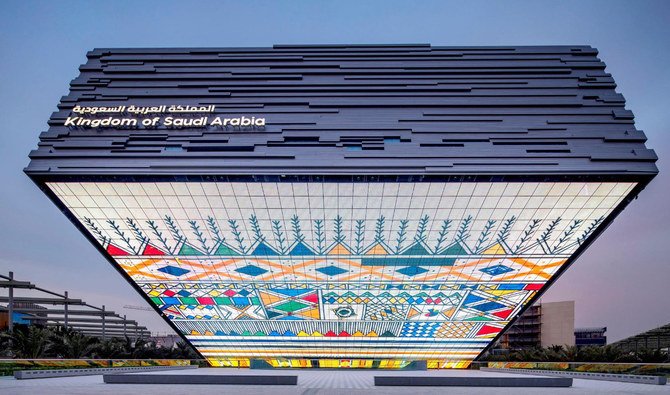 The Saudi Pavilion has a giant hall 30m in diameter that will house an art exhibition entitled “Vision.” Its interactive floor takes visitors on a visual and audio journey around the essence of Saudi culture and is designed by Saudi artists.