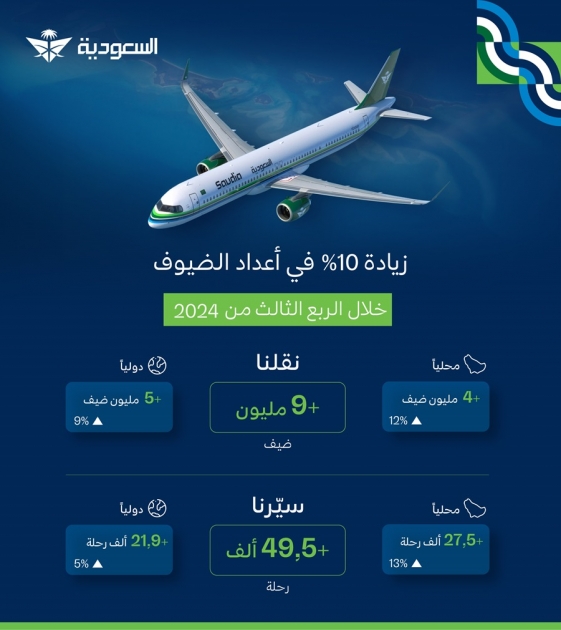 Saudia, the national flag carrier of Saudi Arabia, has reported significant growth in its operational performance for the third quarter of 2024, according to its latest performance report. The airline transported over nine million guests, marking a 10% increase compared to the same period in 2023. This achievement was supported by more than 49,500 flights, reflecting a 9% increase in flight operations. Additionally, Saudia logged 146,700 flight hours, representing an 11% increase over last year, with an impressive on-time performance rate of 87.8%.
