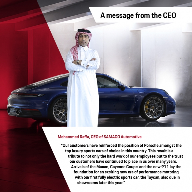Mohammed Raffa, Chief Executive Officer of SAMACO Automotive, said: “Our customers have reinforced Porsche’s position amongst the top luxury sports cars of choice in this country. This result is a tribute to not only the hard work of our employees but to the trust our customers have continued to place in us over many years. Arrivals of the Macan, Cayenne Coupé and the new 911 lay the foundation for an exciting new era of performance motoring with our first fully electric sports car, the Taycan, also due in showrooms later this year.”