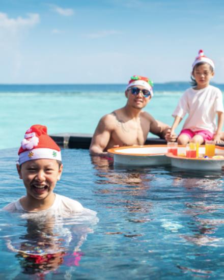Witness the magic of Christmas as our younger guests spread festive cheers and sing heart-warming carols around the island. The excitement continues when Santa Claus arrives in style, carrying a sack full of gifts for the children.