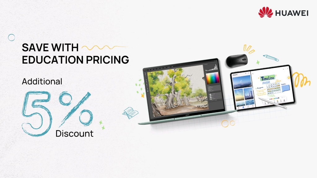 Huawei’s educational discount is applicable to students and their parents, institution faculty, staff, and teachers of all grades. Simply use code ‘ASTUDENT’ when placing an order and get up to 5% discounted on all eligible products. The special educational discount will be running all-year round across Huawei’s e-shop.