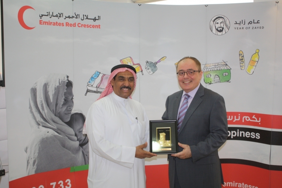 General Manager Walid Al-Awa of TAMANI Marina Hotel & Hotel Apartment handed the cheque to Mohammed Abdullah Alhaj Al Zaroni, Emirates Red Crescent Manager – Dubai Branch at the Red Crescent Officewho in turn presented the token of appreciation to Al Awa for the donation.