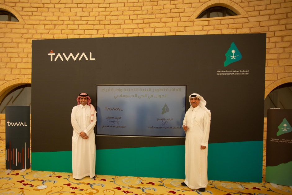 The Diplomatic Quarter General Authority has recently partnered with the leading integrated ICT Infrastructure service provider in the Kingdom, TAWAL, for the development of the area’s telecommunication infrastructure. The strategic partnership is first of its kind in Saudi Arabia through which TAWAL will be managing the ICT infrastructure and dealing with the mobile network operators in fulfilling the Diplomatic Quarter’s requirements. The agreement was signed by the CEO of the Diplomatic Quarter General Authority Dr. Fahad bin Hussein Bin Mushayt and the CEO of TAWAL Eng. Mohammed bin Abdulaziz Alhakbani. The partnership witnessed the attendance of officials and company executives according to agreed-upon precautionary health procedures.