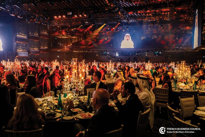 This year’s Gala dinner was attended by more than a thousand guests, including local officials such as H.E. Najeeb Mohamed Al-Ali, Executive Director, Bureau Expo 2020, H.E. Majid Saif Al-Ghurair, Chairman of Dubai Chamber of Commerce & Industry, H.E. Excellency Hamad Buamim, CEO and President of the Dubai Chamber and Chairman of the World Chambers Federation, as well as H.E. Mohamed Ali Musabbeh Al Nuaimi, Chairman of RAK Chamber of Commerce and Industry, and other local and French senior representatives.