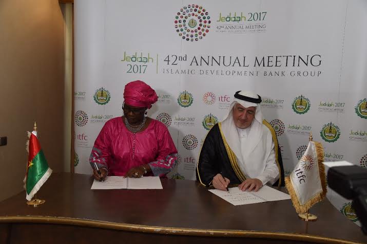 On the side-lines of the Islamic Development (IDB) Group 42nd Annual Meeting of the Board of Governors held in Jeddah during the period from 14th to 18th of November 2017, the International Islamic Trade Finance Corporation (ITFC) has signed a three -Years US$ 450 million socioeconomic development framework agreement with the Government of Burkina Faso. The agreement has been signed by Eng. Hani Salem Sonbol, CEO of ITFC and H.E Mrs Hadizatou Rosine Coulibaly, Minister of Economy, Finance and Development and Islamic Development Bank Governor for Burkina Faso.