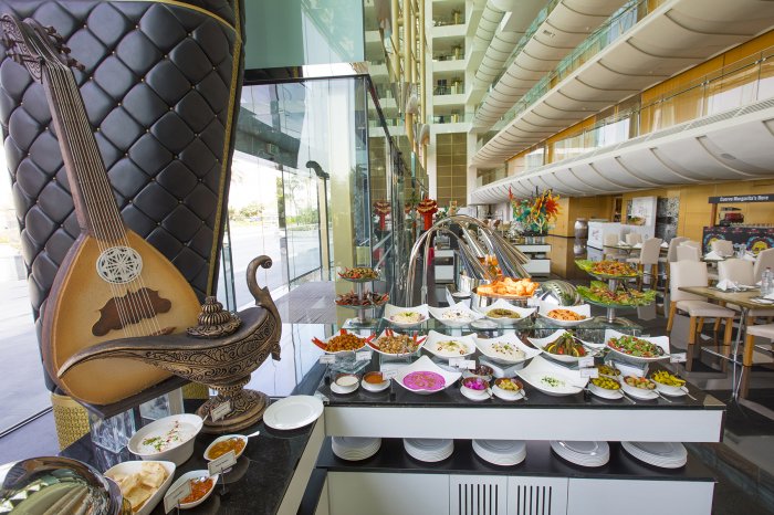 On Saturday, 2 December 2017, ‘Farriers’ family friendly restaurant, especially decorated for this day, offers mouthwatering Arabic and International buffet with special Emirati dishes, carefully prepared by a team of professional Arabic chefs. Here, guests will explore a true Emirati culinary experience with the variety of Emirati masterpieces whether ‘lamb machbous’, margouga, ‘prawn nashaf’, ‘chicken biryani’ and ‘lamb ouzi’ or with sensational Emirati desserts featuring ‘khabeesa’, ‘balaleet’ and ‘aseeda.