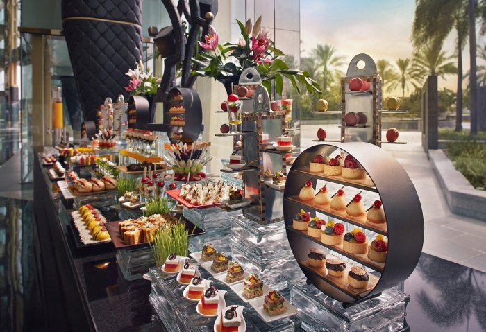 UAE National Day Brunch at The Meydan Hotel celebrates the diversity of the UAE with a live Jazz band and an Arabic and International buffet with more than 12 live-cooking stations, featuring various BBQ stations, tandoor oven and live Arabic bread baking station together with tempura and Peking duck stations. Further interactive cooking stations include authentic Saj and shawerma stations, Chinese live Wok and live sushi and sashimi counters together with pasta corner, a butcher’s block carvery and a dedicated healthy juices station, where chefs freshly squeeze a wide variety of fruits and vegetables. All dessert enthusiasts are invited to enjoy a sweet symphony with the extensive dessert buffet offering sensational warm and cold masterpieces, from ‘mohalabeya’, ‘date cake’ and ‘Um Ali’ to ‘crème brûlée, ‘tiramisu’ and ‘red velvet cake’.