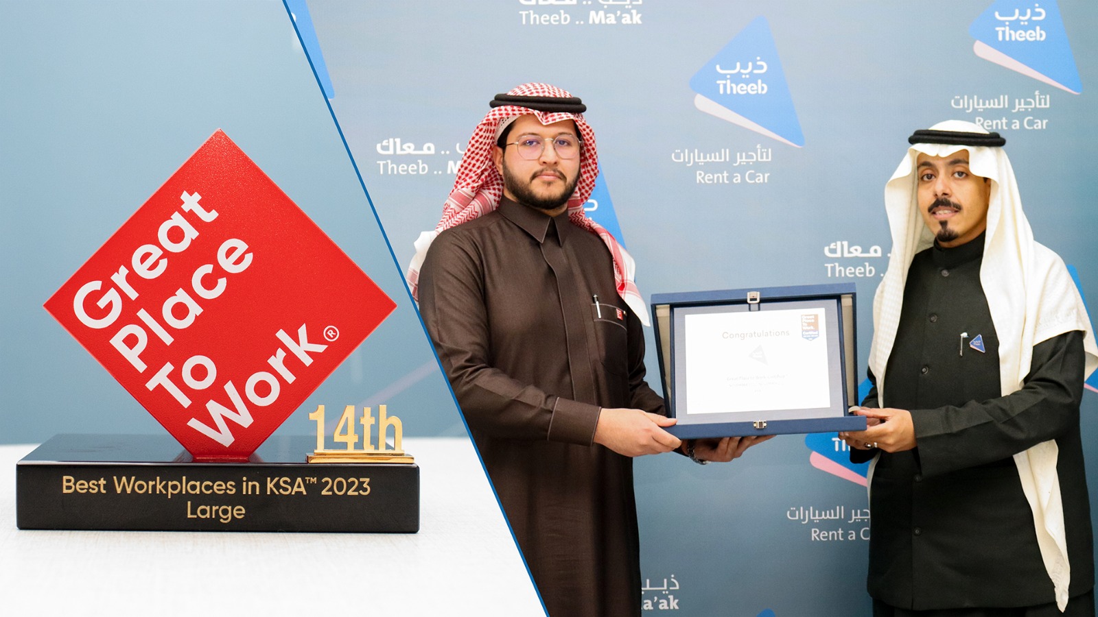 “Theeb Rent a Car” Company won the best work environment award for the year 2023 “Great Place toWork” in the Kingdom of Saudi Arabia. With this award, the company achieved the fourteenth rank among the largest companies in the Kingdom, as a result of the ideal and stimulating work environment that the company enjoys. And, through such an environment, the company provides an attractive scope of work for its employees besides an ideal experience for the company’s customers through its various network of branches spread over several cities and governorates of the Kingdom.