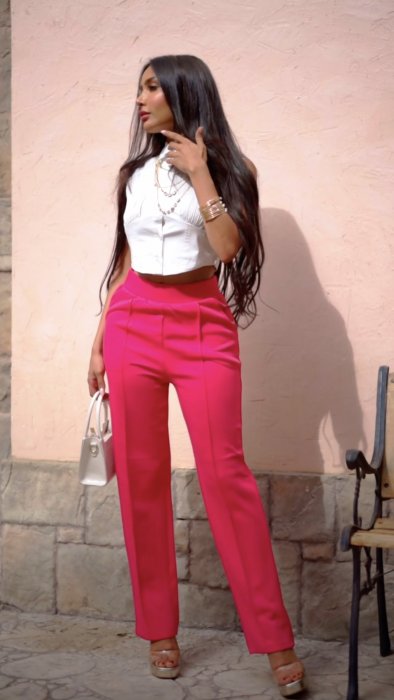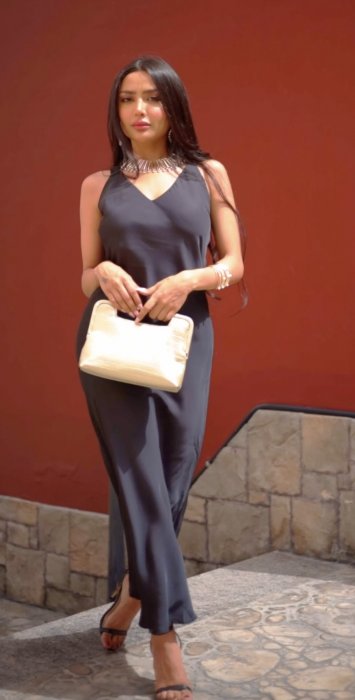 Muruj is poetry in motion as she cheerfully twists and twirls like a desert rose against the summer tempest. REDTAG’s straight-cut trouser in fuchsia colour is becoming on her, effortlessly complementing the off-white top that confidently defies the Sun’s rays. Muruj channels the chic Middle Easterner with the unpretentious solid-black midi dress, breezily awaiting the upcoming Eid festivities.
