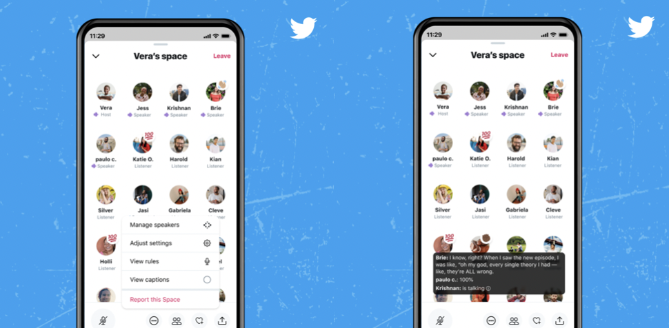In addition to talking, hosts can pin Tweets to the Space, turn on captions so everyone can follow along with what they’re saying, and Tweet the Space so their followers can join.