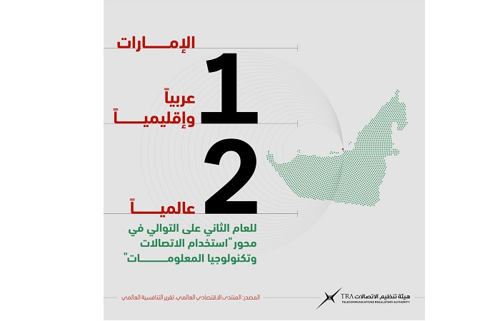 DUBAI, 21st December, 2020 (WAM) -- The UAE concluded 2020 by achieving global leadership in telecom sector quality and evolution, where the country maintained the first place in the Arab region and regionally, and came second globally for the second consecutive year in "Use of telecommunications/ICTs", which measures the efficiency and evolution of the telecommunications sector in countries around the world as part of the Global Competitiveness Report issued by the World Economic Forum.