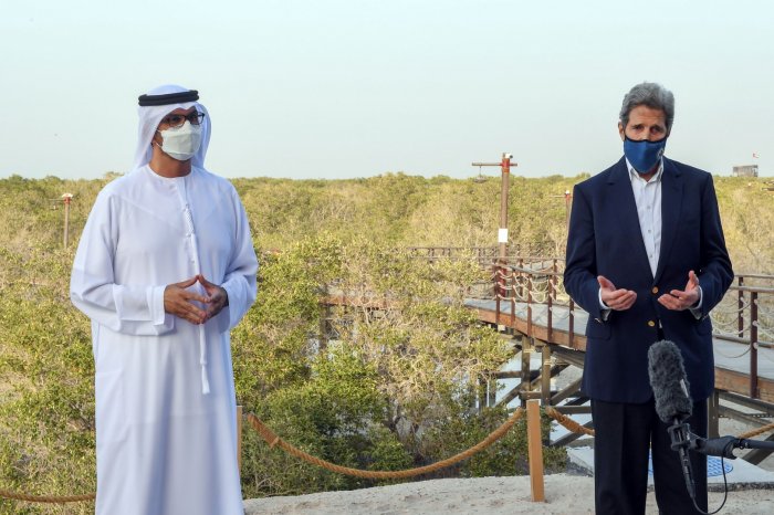 At a media briefing in the Jubail Mangrove Park, Abu Dhabi, Dr Al Jaber said: "The world is watching for concerted action on climate in 2021. U.S. Special Envoy for Climate Kerry's visit showcases the UAE’s continued commitment to progressive climate action, which the UAE has always viewed as an opportunity to grow and diversify our economy, especially in light of these difficult times and of global efforts to reduce and mitigate the negative impacts of the pandemic on societies."