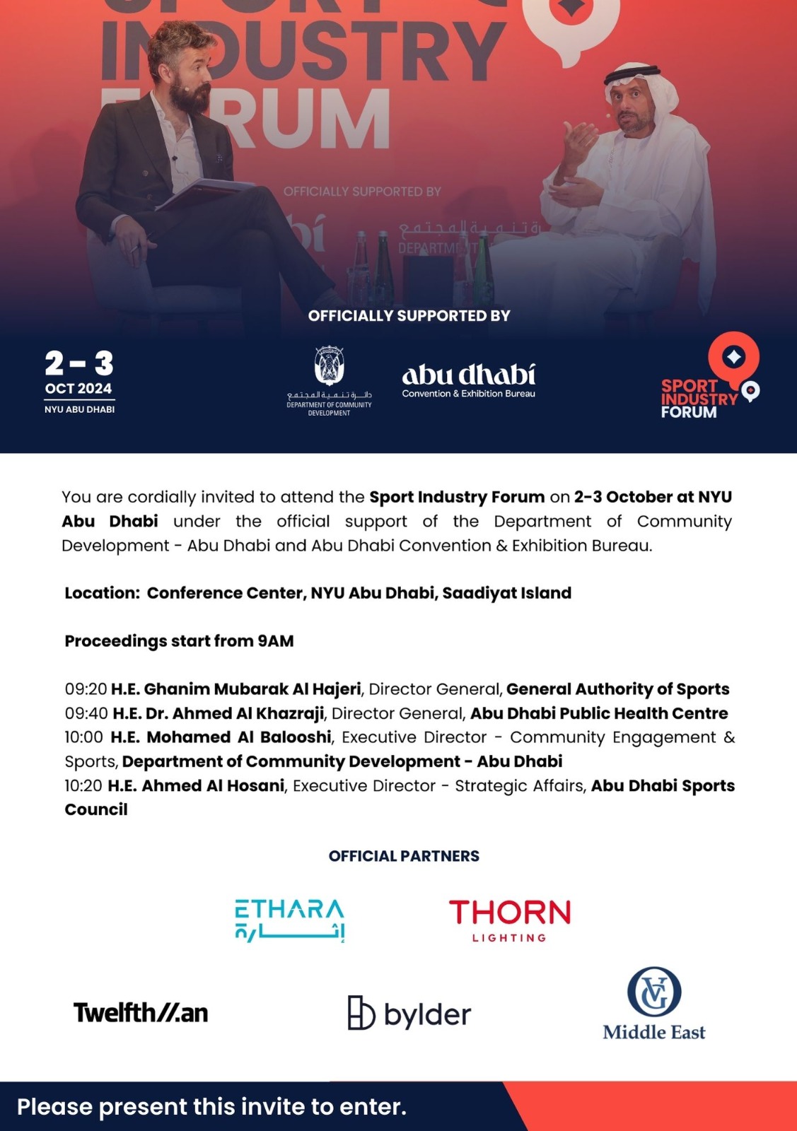 The Forum, supported by strategic partnerships with the Abu Dhabi Convention and Exhibition Bureau and the Department of Community Development - Abu Dhabi, underlines Abu Dhabi’s growing status as a global hub for sports business and collaboration.