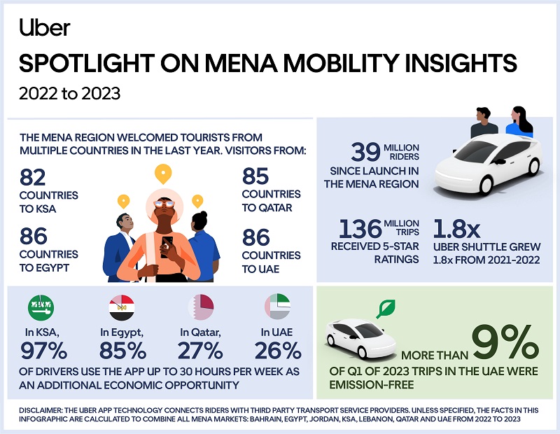 Frans Hiemstra, MEA Regional Director and General Manager for Uber said, “MENA is one of our key regions that contributes to the business globally with its potential to welcome innovative technologies. Our vision for the region is focused on 3 main pillars: to provide all riders using our platform who just reached 39m since launch in MENA with diverse options that would make their travel more seamless; to support drivers during these unprecedented times by creating new opportunities for additional earnings; to contribute to the wider goal of making our planet greener as per our global 2040 commitment to make our platform emissions-free. Today, we are proud to share key 2022-2023 milestones that have contributed to this vision so far.”