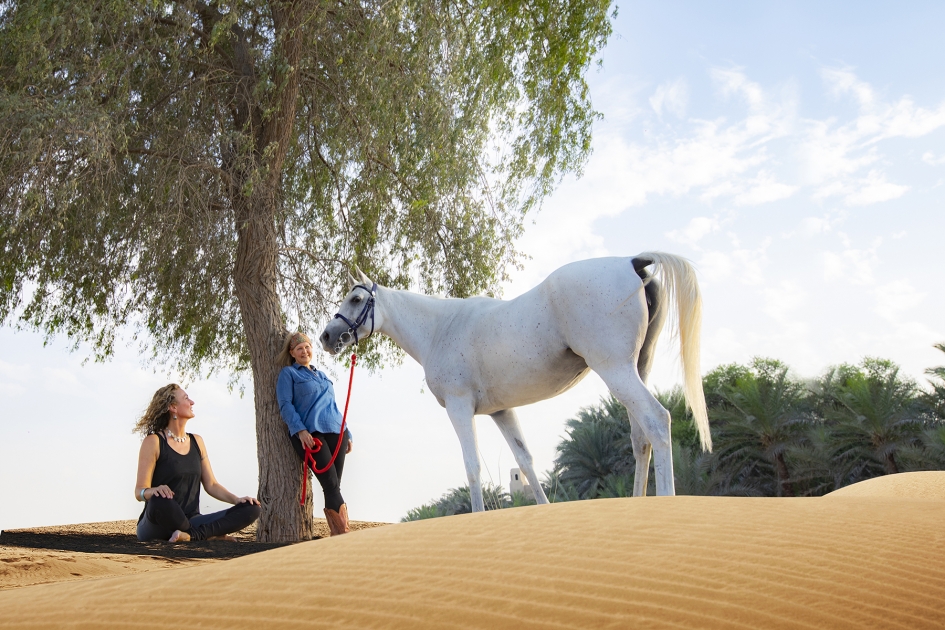 The theme of ‘Bab Al Shams Yoga Retreat’ is ‘Connection’ presenting a unique combination between Yoga and interaction with horses, where every participant is offered an opportunity to experience a ‘Horse-Human Connection’ session by Kelly L. Eide**, Master Certified Equus Facilitator in UAE, England & Australia as well as two well-guided yoga and meditation sessions by Amanda Cunliffe Smith*, one of Dubai’s well-known yoga experts, together with Citar tunes played by Rais Khan.
