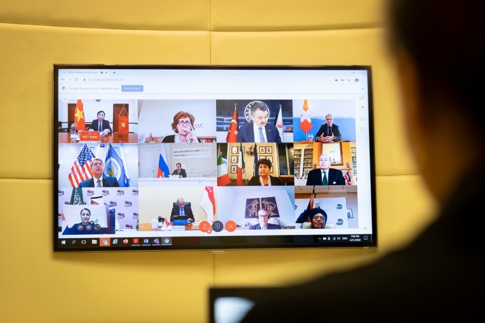 Her Excellency extended the UAE’s gratitude to the Custodian of the Two Holy Mosques, King Salman bin Abdulaziz Al Saud, for calling for the virtual meeting to discuss and enhance international efforts to combat Covid-19, as well for Saudi Arabia’s sterling leadership of the G20 response to the crisis. She also reiterated the sentiments of His Highness Sheikh Mohamed bin Zayed Al Nahyan, Crown Prince of Abu Dhabi and Deputy Supreme Commander of the UAE Armed Forces, who released a statement for the Extraordinary G20 Leaders’ Summit last month, reiterating that international cooperation and solidarity is needed now more than ever.