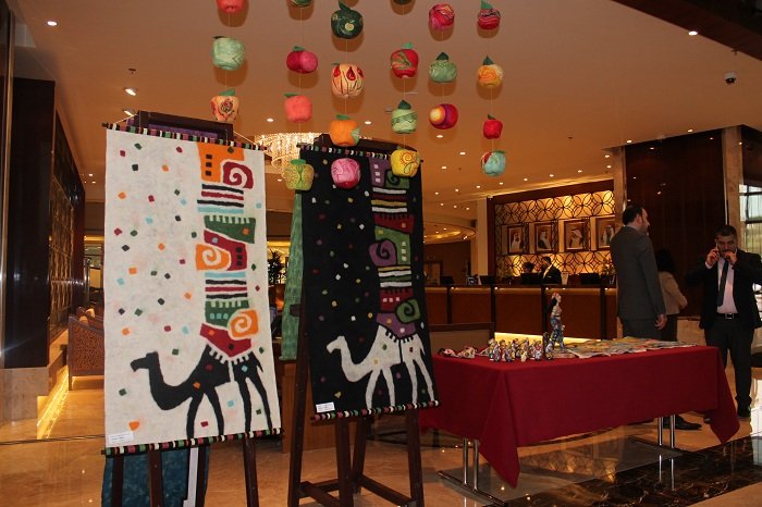 As works of Felt fashioned by Gulzhanat draped gracefully from the high points in the lobby, encircled by 60 pieces of art created by about 50 artists including Tainov Serik and Liliya Kim, varied selection of fashion pieces of clothes by Saule and silver jewelry ornaments.  Khalidiya Palace Rayhaan by Rotana welcomed the esteemed artists and their remarkable creations, guests embarked on a journey of discovery and admiration as artists guided them through the beauty which is the Kazakhstan, its people and their culture through their creations.