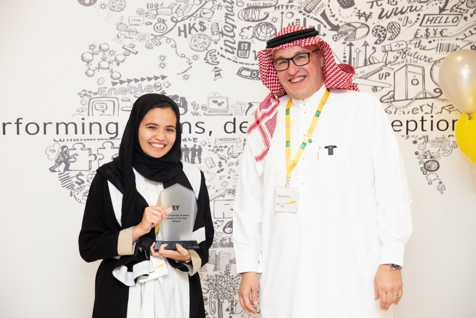The competition for the Corporate Finance Woman of the Year award in Saudi Arabia received applications from several universities across the country. The submission process required candidates to determine how they would create a lasting legacy as a future Saudi leader. They were also required to offer their points of view on a recent business transaction in Saudi Arabia that was of interest to them. Following deliberations, the finalists presented their answers to the regional leadership and Transaction Advisory Services (TAS) professionals from EY, along with group workshops and one-to-one interviews.